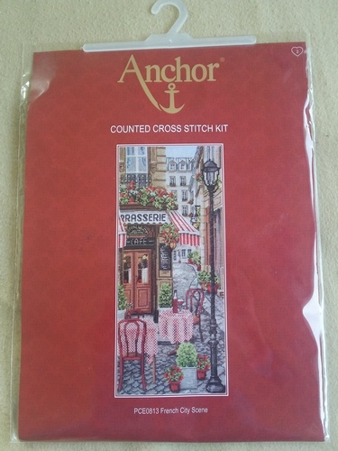 Sada obsahuje: bavlnky Anchor, látku 16ct Aida světle modrá, předlohu a jehlu.